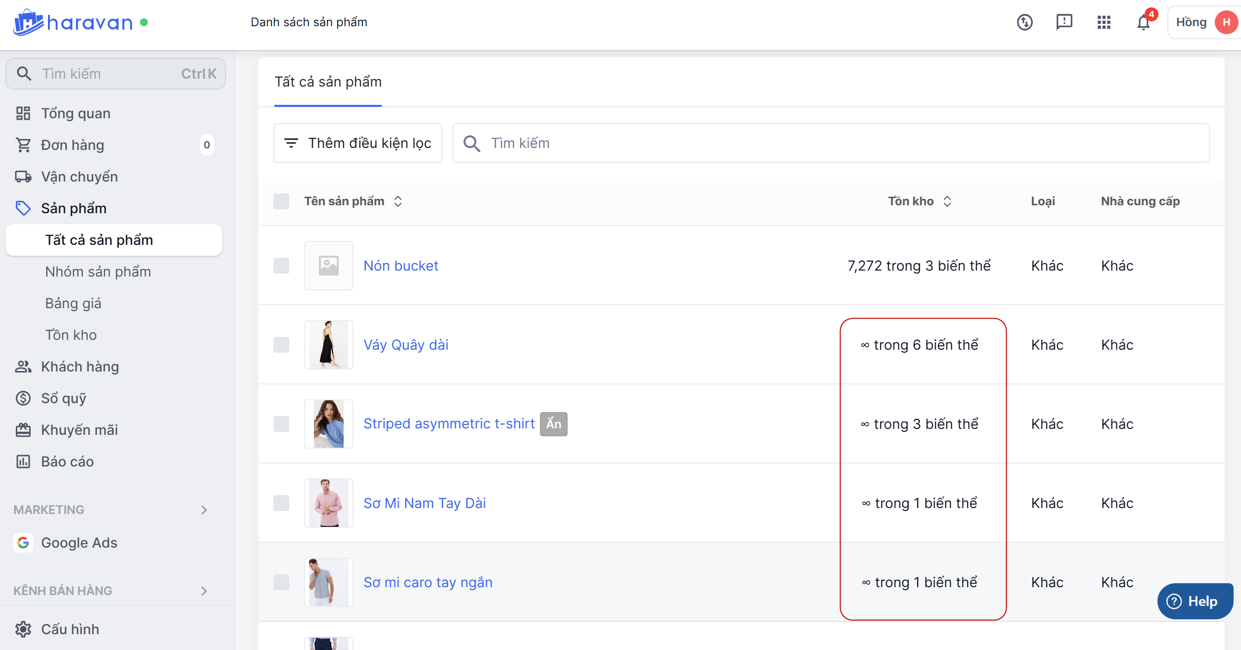 - Haravan khuyến khích đối với tồn kho cơ bản, người bán nên thực hiện theo cách Nhập trong chi tiết sản phẩm.